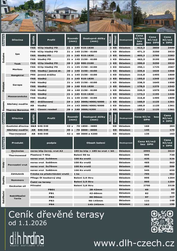 Abyste se v našem sortimentu přehledně zorientovali, neustále pro vás aktualizujeme ceníky i katalogy. Ať už hledáte dřevěné terasy vinylové, dřevěné nebo laminátové podlahy, každý typ najdete v samostatném katalogu plném interiérových fotek, které vám mohou být inspirací.